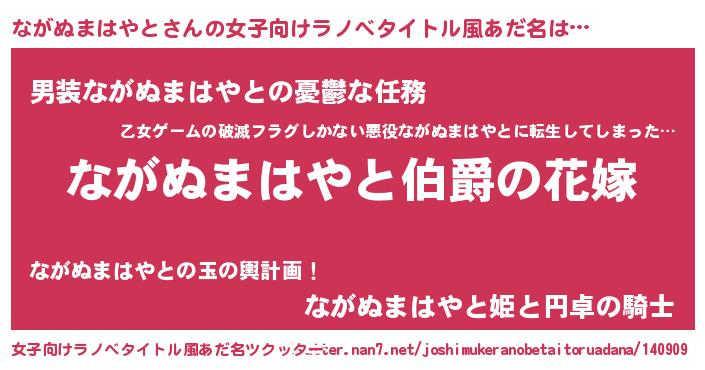 | 男性向けラノベタイトル風あだ名 | 『やはりながぬまはやとの青春ラブコメはまちがっている 』 |