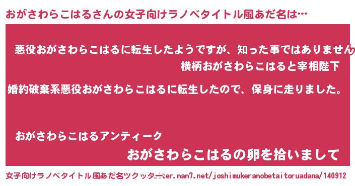 | 男性向けラノベタイトル風あだ名 | 『転生したらおがさわらこはるだった件』 |