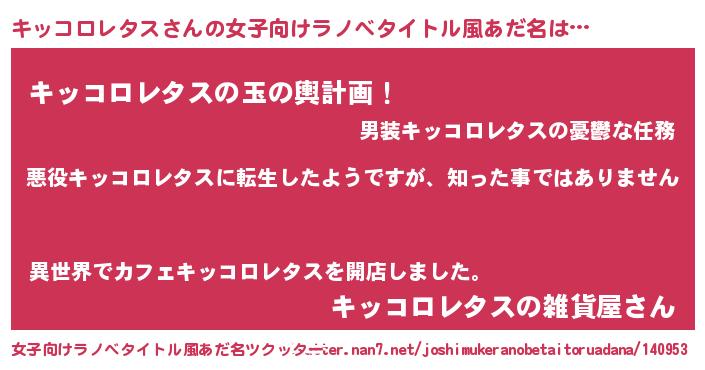 | 胡散臭い通販商品みたいなあだ名 | 『あなたにだけ特別に提供する世界で10本だけ現存している希少なブランデー…その名も「キッコロレタス」』 |