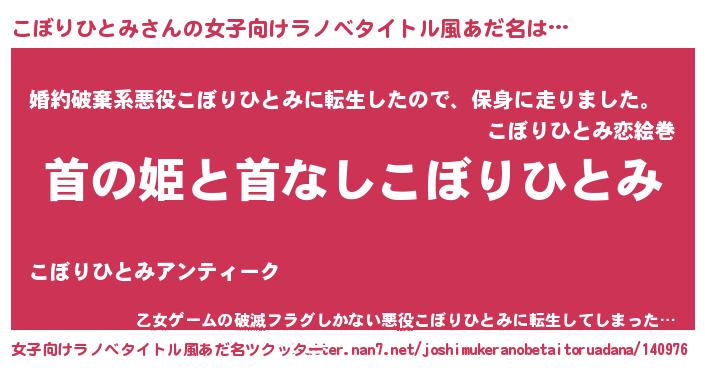 | 男性向けラノベタイトル風あだ名 | 『はたらくこぼりひとみさま!』 |