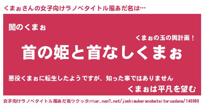 | 意味不明あだ名 | 『自称くまぉ』『とにかく怪しいくまぉ』 |