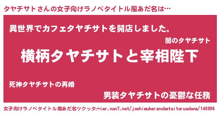 | 男性向けラノベタイトル風あだ名 | 『タヤチサトに滅ぼされるだけの簡単なお仕事です』 |