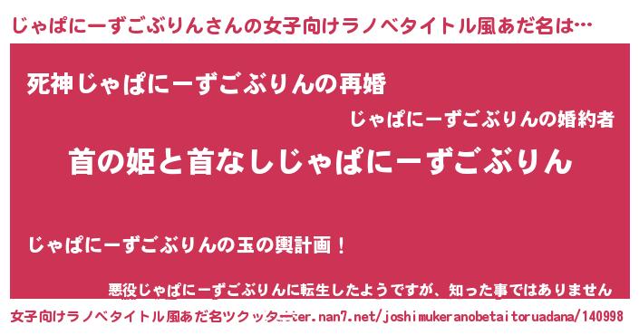 | 男性向けラノベタイトル風あだ名 | 『はたらくじゃぱにーずごぶりんさま!』 |