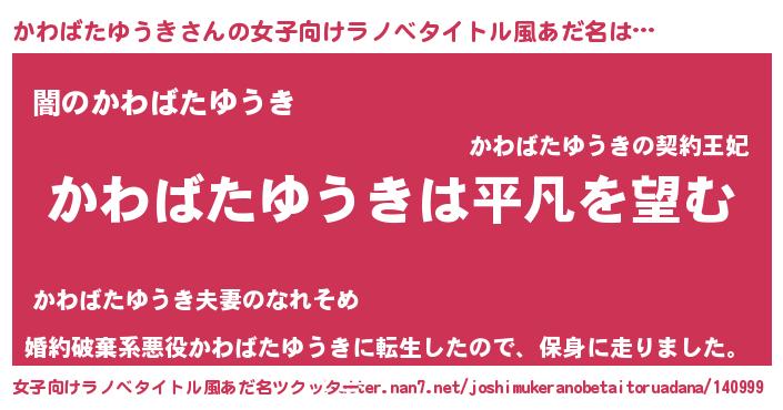 | 胡散臭い通販商品みたいなあだ名 | 『信頼と実績のペンダント…その名も「かわばたゆうき」』 |