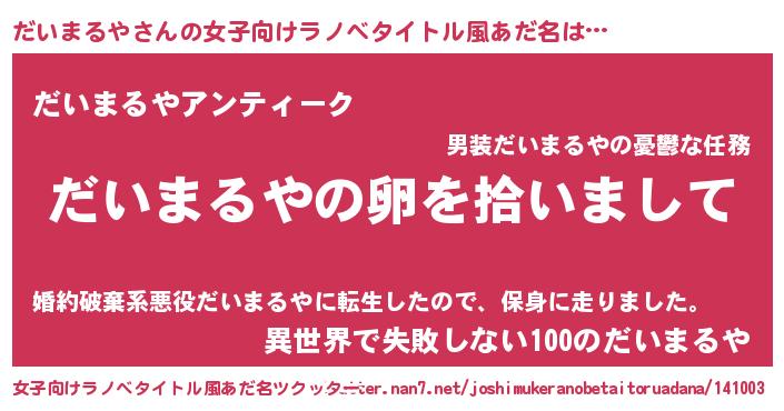 | 男性向けラノベタイトル風あだ名 | 『だいまるやの嫁は女の子じゃないと思った?』 |