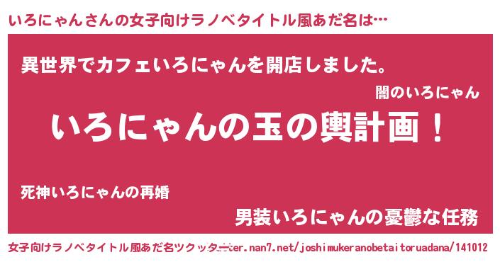 | 胡散臭い通販商品みたいなあだ名 | 『前代未聞の健康食品…その名も「いろにゃん」』 |