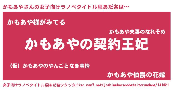 | 胡散臭い通販商品みたいなあだ名 | 『来世でも幸せになれる水素水…その名も「かもあや」』 |