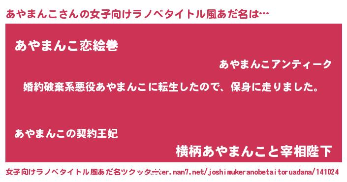 | 男性向けラノベタイトル風あだ名 | 『アヤマンコスレイヤー』 |