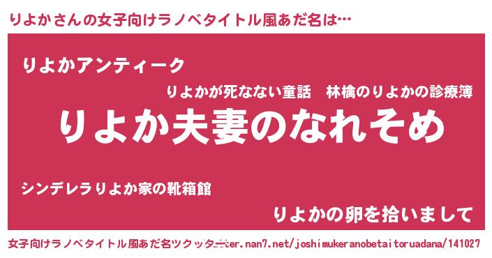 | 意味不明あだ名 | 『眠気覚ましガムりよか味』『自称りよか』 |