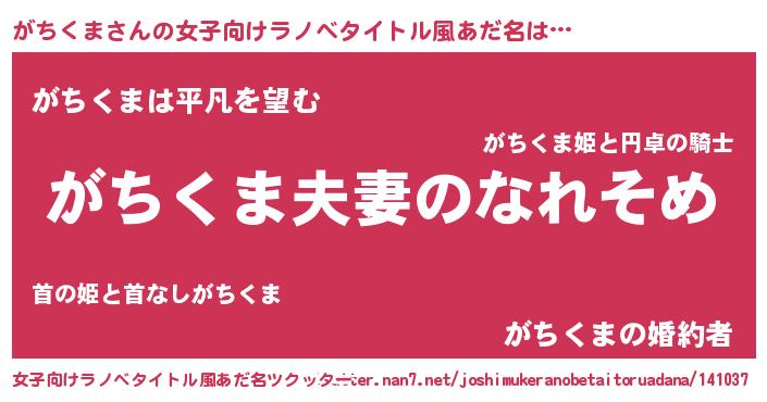 | ポケモン風あだ名 | 『ガックウザ』『ヒガチクマ』 |