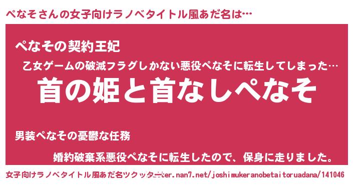 | 男性向けラノベタイトル風あだ名 | 『はたらくぺなそさま!』 |