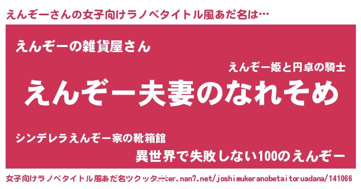 | 男性向けラノベタイトル風あだ名 | 『おまえをオタクにしてやるから、俺をえんぞーにしてくれ! 』 |