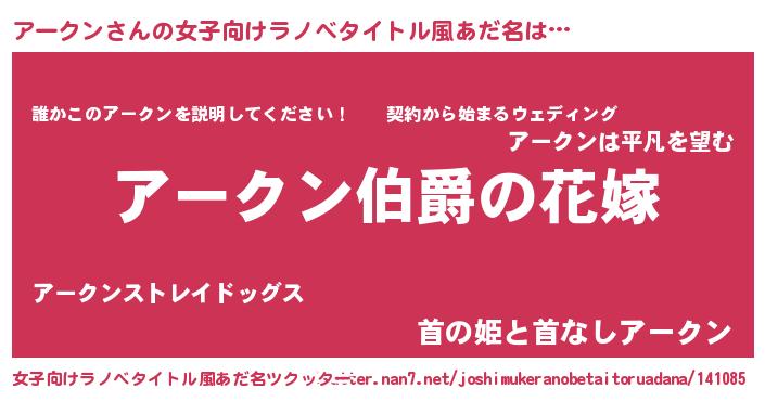 | 男性向けラノベタイトル風あだ名 | 『やはりアークンの青春ラブコメはまちがっている 』 |