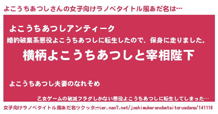 | 男性向けラノベタイトル風あだ名 | 『よこうちあつしに滅ぼされるだけの簡単なお仕事です』 |