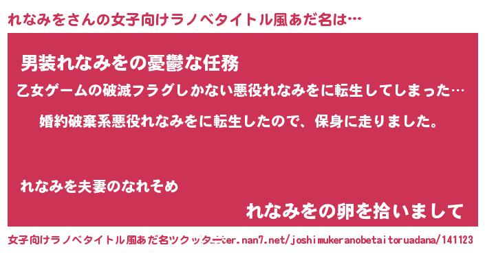 | 男性向けラノベタイトル風あだ名 | 『レナミヲスレイヤー』 |