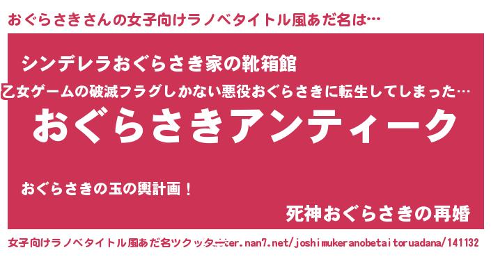 | 意味不明あだ名 | 『自称おぐらさき』『永久保存おぐらさき』 |