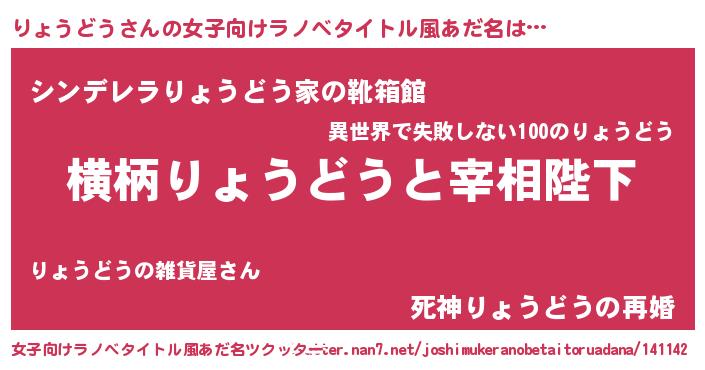 | 男性向けラノベタイトル風あだ名 | 『りょうどうに滅ぼされるだけの簡単なお仕事です』 |