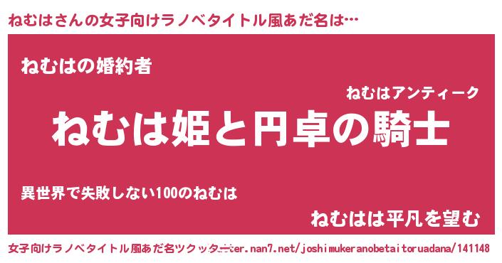 | 意味不明あだ名 | 『ペロリンねむは』『ねむはフォーエバー』 |