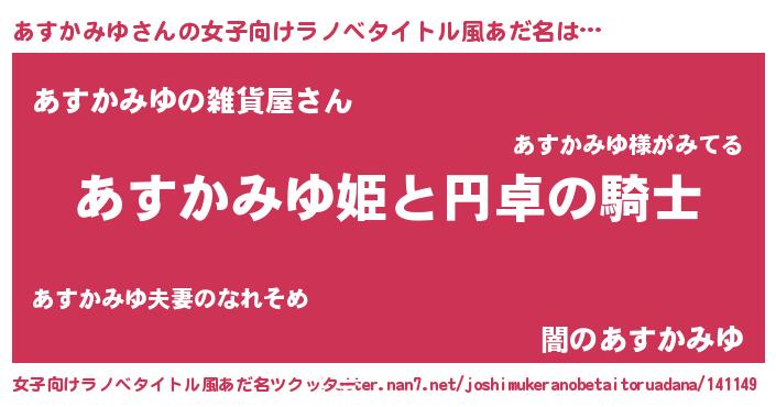 | 男性向けラノベタイトル風あだ名 | 『あすかみゆの憂鬱』 |