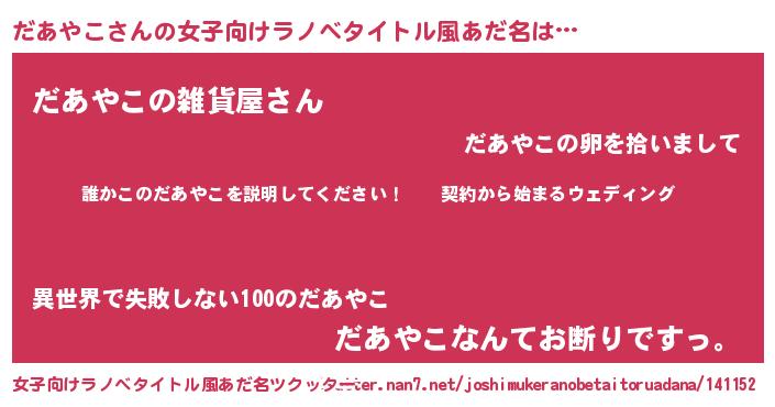 | 胡散臭い通販商品みたいなあだ名 | 『億万長者になれる霊験あらたかなお札…その名も「だあやこ」』 |