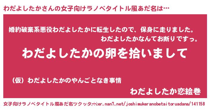 | 男性向けラノベタイトル風あだ名 | 『わだよしたかの嫁は女の子じゃないと思った?』 |