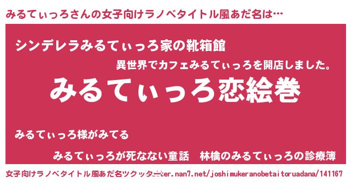 | ヘコむあだ名 | 『みるてぃっろ(苦笑)』『みるを』 |