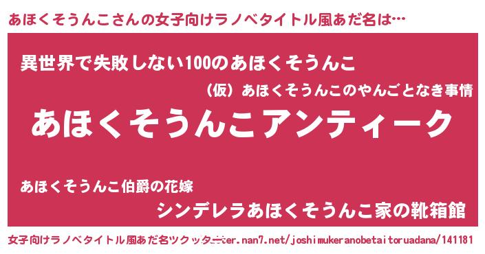| 男性向けラノベタイトル風あだ名 | 『魔法科高校のあほくそうんこ』 |