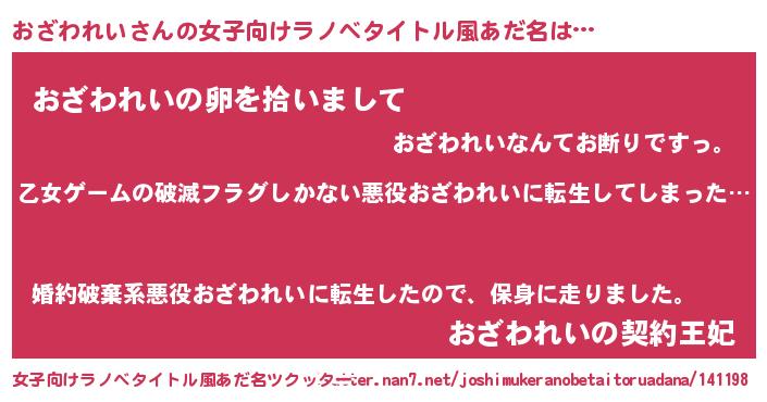 | 男性向けラノベタイトル風あだ名 | 『魔弾の王とおざわれい』 |