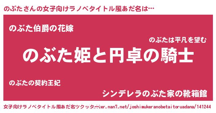 | 男性向けラノベタイトル風あだ名 | 『のぶたの憂鬱』『緋弾のノブタ』 |