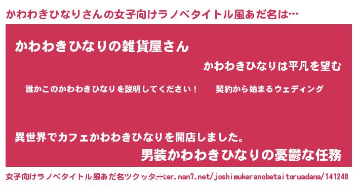| 胡散臭い通販商品みたいなあだ名 | 『億万長者になれる水晶球…その名も「かわわきひなり」』 |