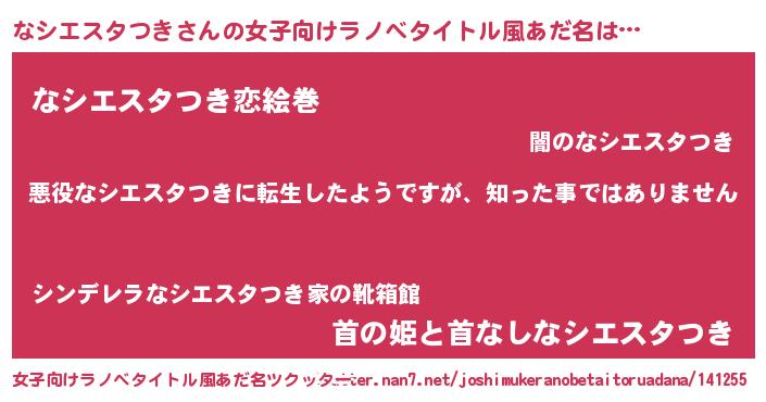 | 男性向けラノベタイトル風あだ名 | 『この素晴らしい世界になシエスタつきを!』 |