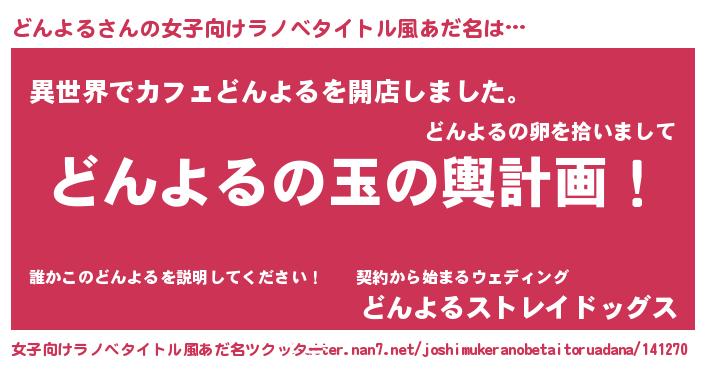 | ヘコむあだ名 | 『どんよる(苦笑)』『どんぷりん』 |