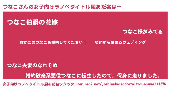 | 胡散臭い通販商品みたいなあだ名 | 『億万長者になれるブレスレット…その名も「つなこ」』 |