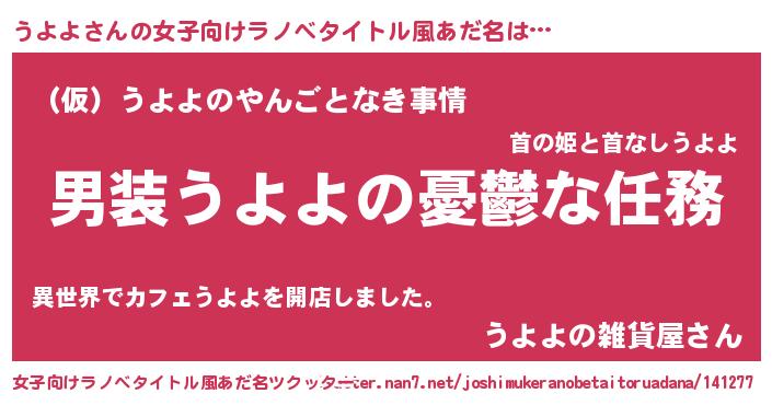 | 男性向けラノベタイトル風あだ名 | 『うちのうよよが世界を掌握している!』 |