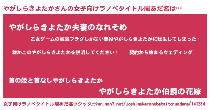 | ファンタジー風あだ名 | 『ヤガフェル』『クインヤット』 |