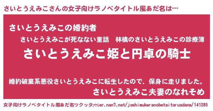 | 胡散臭い通販商品みたいなあだ名 | 『モテモテ間違いなし水晶球…その名も「さいとうえみこ」』 |