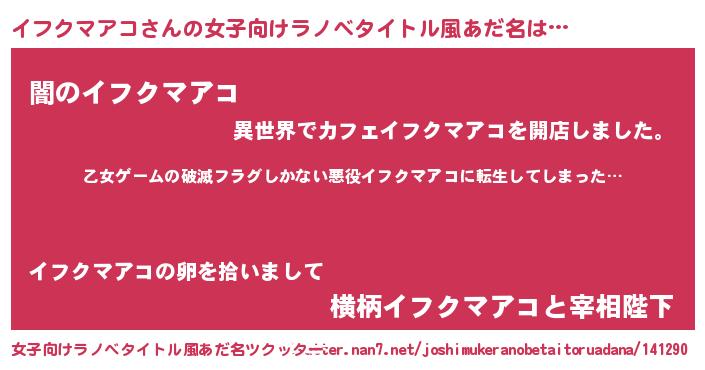 | 意味不明あだ名 | 『住所不定無職イフクマアコ(43歳)』 |
