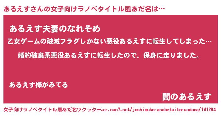 | 男性向けラノベタイトル風あだ名 | 『転生したらあるえすだった件』 |
