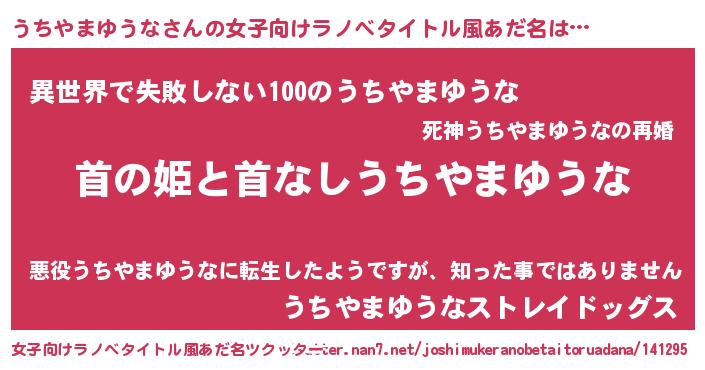| 胡散臭い通販商品みたいなあだ名 | 『絶対に幸福をもたらす健康食品…その名も「うちやまゆうな」』 |