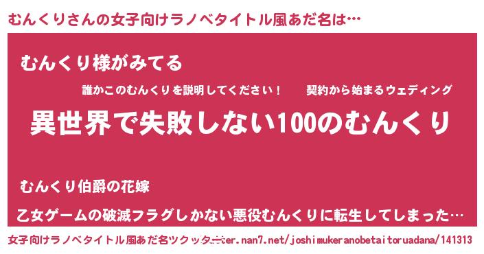 | 男性向けラノベタイトル風あだ名 | 『むんくりという概念が存在しない退屈な世界 』 |