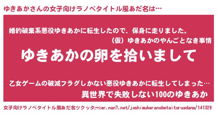 | 胡散臭い通販商品みたいなあだ名 | 『伝統あるサプリメント…その名も「ゆきあか」』 |