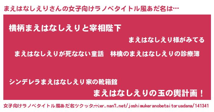 | 男性向けラノベタイトル風あだ名 | 『魔弾の王とまえはなしえり』 |