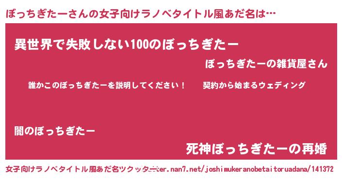 | 男性向けラノベタイトル風あだ名 | 『ボッチギターアートオンライン』 |