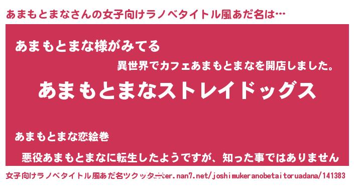 | 男性向けラノベタイトル風あだ名 | 『Re:あまもとまなから始める異世界生活』 |