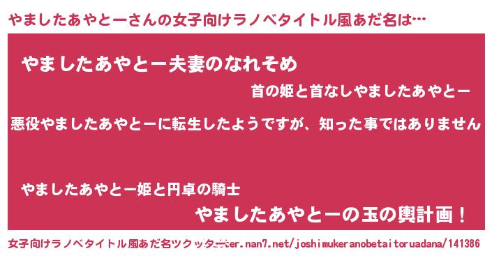 | 男性向けラノベタイトル風あだ名 | 『この素晴らしい世界にやましたあやとーを!』 |