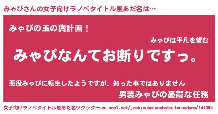 | ヘコむあだ名 | 『みゃっ子』『みゃび(遠い目)』 |