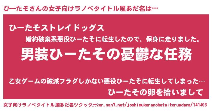 | 意味不明あだ名 | 『自称ひーたそ』『なめこ科ひーたそ属』 |
