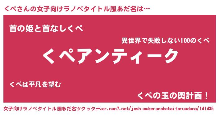 | 意味不明あだ名 | 『自称くぺ』『たけのこ科くぺ属』 |