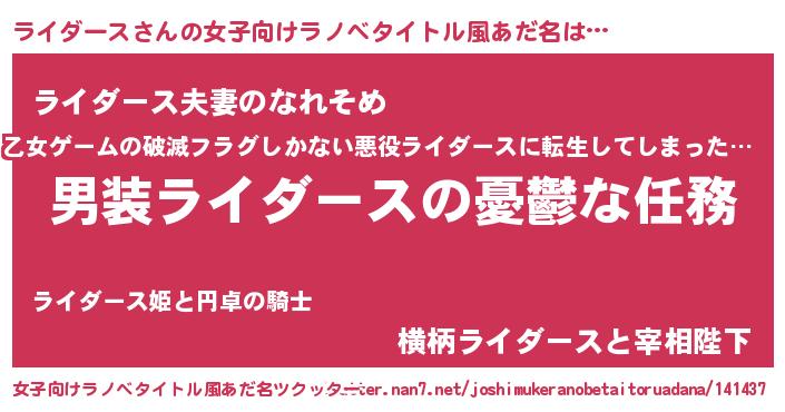 | 男性向けラノベタイトル風あだ名 | 『冴えないライダースの育てかた』 |