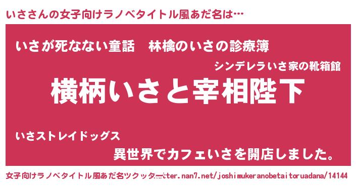 | 胡散臭い通販商品みたいなあだ名 | 『あなたにだけ特別に提供する100年もののヴィンテージワイン…その名も「いさ」』 |